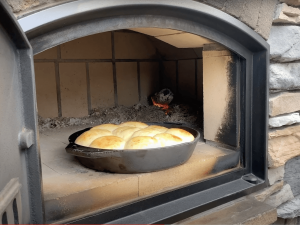 You really don’t have to stir the asparagus much while it’s cooking since the heat comes from all sides of the brick oven. I prefer to use a cast iron skillet with the grill lines in it for all my veggies. I like the little marks it leaves! Instead of using a brand new gallon size plastic bag save and reuse your bags. Recycle!